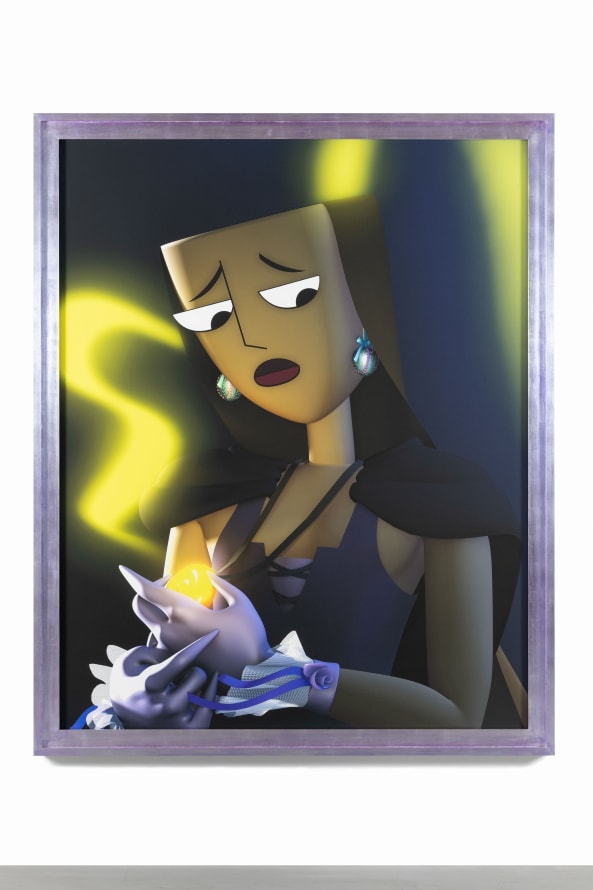 In ihren Arbeiten spielt Bunny Rogers (*1990 in Houston, Texas) mit Identitätsvorstellungen und thematisiert Empfindsamkeit und Verletzlichkeit, Freundschaft und Außenseitertum. Dabei inspirieren sie oft Charaktere aus Fernsehserien, Videospielen und dem Internet. In ihrem fünfzehnteiligen, großformatigen Zyklus „Self Portrait as clone of Jeanne D’Arc“ (2019) adaptiert Rogers die Figur Joan of Arc aus der Zeichentrickserie „Clone High“, in der eine Schule von Klonen historischer Persönlichkeiten bevölkert wird. Als Joan of Arcs Alter Ego zeigt sich die Künstlerin auf diesen Bildern in unterschiedlichen Situationen mit Bezügen aus dem persönlichen Alltag sowie aus der Populärkultur und verwandelt den Ausstellungsraum in eine intime Stimmungsbühne.