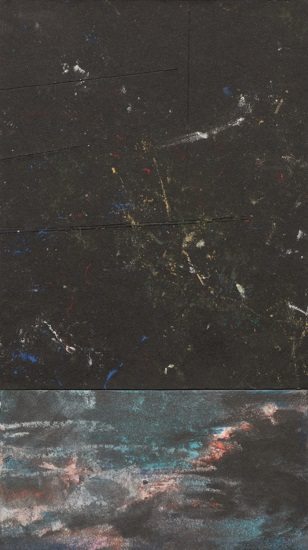 Bildunterschrift: Galerie Poll, Die Zeichnung geht weiter – Martina Altschäfer, Am Meer, 2013, Farbstift und Pastell auf schwarzem Karton, 17,5 x 9,5 cm