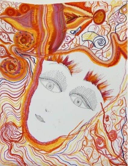 Belhe Zaimoglu kombiniert eine schonungslose Offenheit mit grafischer Verspieltheit. Ein Bild zeigt eine weibliche, halbnackte Person, nur bedeckt von einem „Schleier“ aus losen bunten Linien, der sich langsam auf einer Seite zu lüften beginnt. Ein anderes zeigt eine Person deren Haut wie durchsichtig erscheint und unter der transparenten Oberfläche ein feines, quirliges Nerven-Netz erkennen lässt. Ein drittes Bild zeigt einen Frauenkopf mit vier Pupillen in den Augen – gehalten in hellen Gelb-, Orange-, und Lilatönen, die für Zaimoglu charakteristisch sind – auf dem Hintergrund eines, in Handschrift durchnummerierten, Kalenderblattes. Die Künstlerin wurde 1966 als Kind türkischer Eltern in Deutschland geboren. Ihre Arbeiten zeugen von einer ereignisreichen und teils schmerzhaften Biografie: Hin- und hergerissen zwischen den Kulturen; Arbeit als Bankangestellte in Ankara; später als ausgebildete Schauspielerin erfolgreich auf deutschen Bühnen, bis sie die Krankheit zum Aufhören zwingt. Heute ist sie Künstlerin, die ihre eigenen Befindlichkeiten in der Malerei zum Thema macht und in einem Mix aus eigenen Techniken und Malverfahren ihre Geschichte aufs Papier bringt.