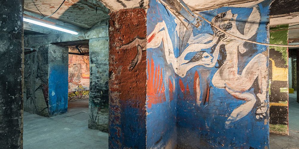 In the former boiler room of the Akademie building on Pariser Platz, a series of murals has survived that were created in 1957 and 1958 for two carnival festivals. Painted by Manfred Böttcher, Harald Metzkes, Ernst Schroeder and Horst Zickelbein – former master students of the German Academy of Arts – they are the only original remnant of the historic building in addition to the exhibition halls. Photographed for the first time in 1989, published and carefully preserved since then, they can now be visited for the first time in almost thirty years. On display are unique testimonies of a young opposition in East Berlin painting, whose former conflict potential can still be guessed at today.