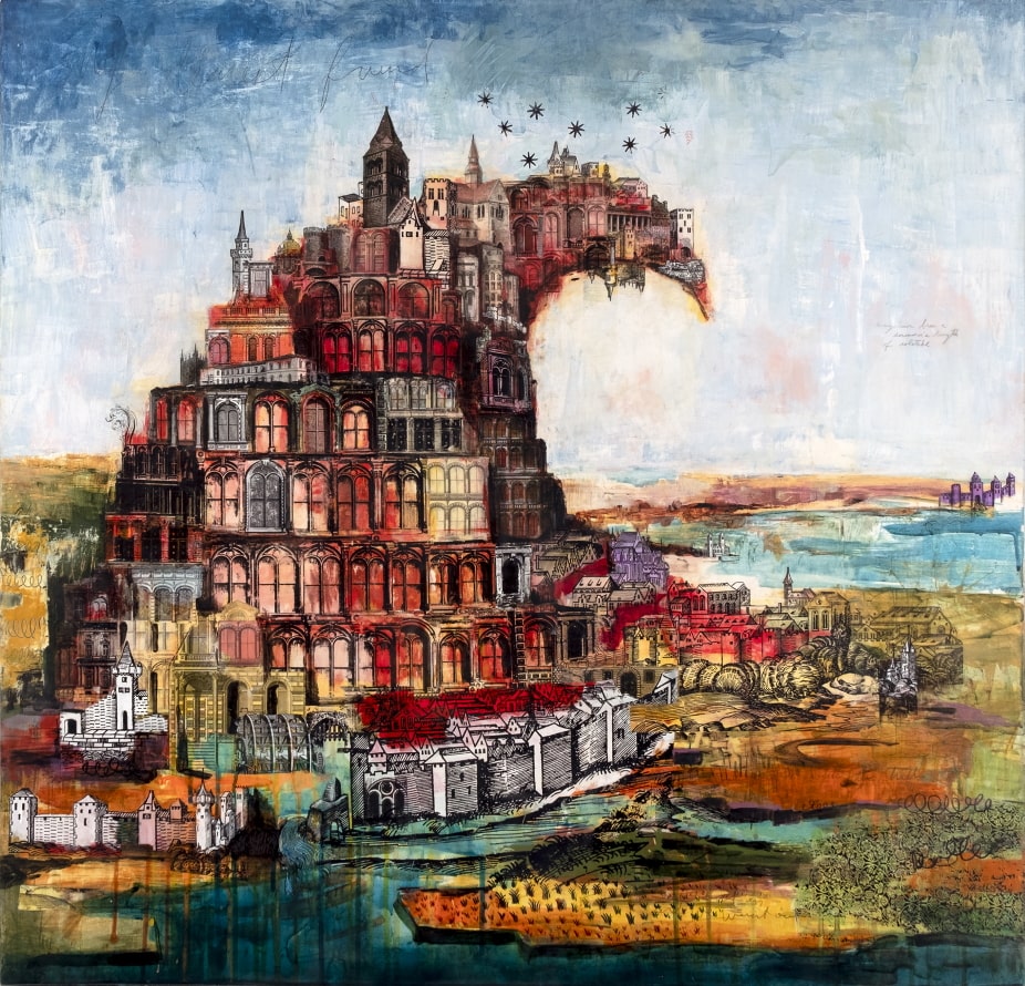But the most evident art historical reference in Hochbaum’s work is the one referring to the famous painting “The Tower Of Babel” of Pieter Bruegel the elder.