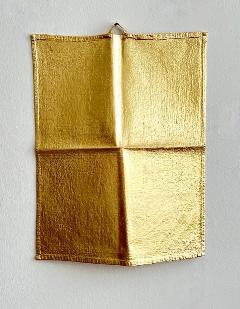 Alvar Beyer, 2023, Antias, Leaf metal on linen, 55 x 42 cm