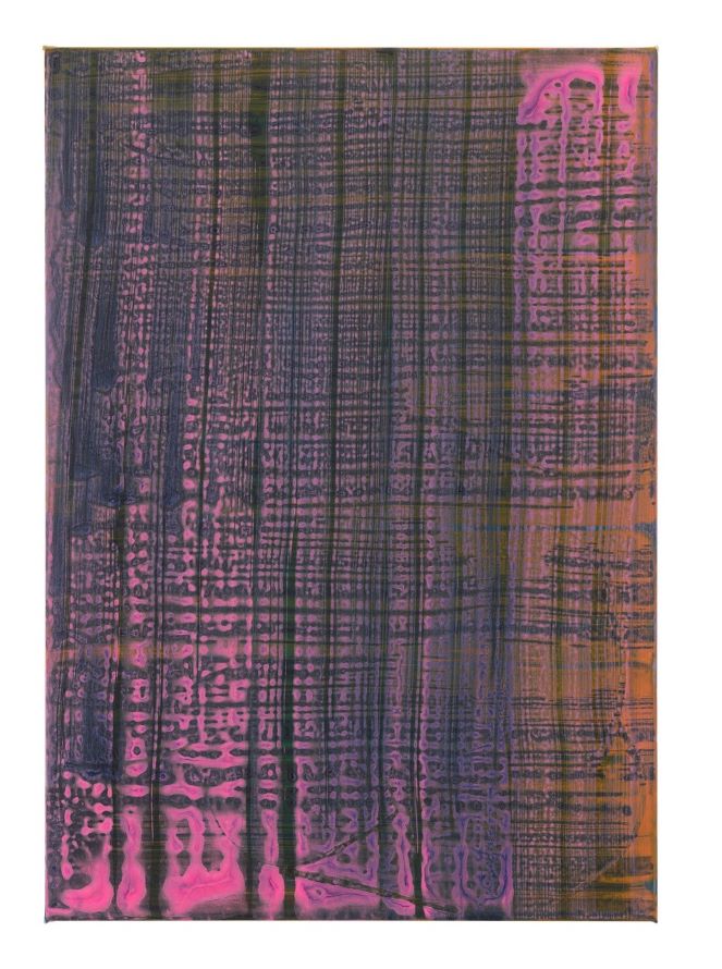 In Alvar Beyer’s most recent paintings, the pictorial has dissolved. By means of many layers, forms and structures worked over and into each other, the new works are created. They are more reminiscent of the interior of a landscape, the interior of a mountain or a situation under the surface of the water. In partially dark and garish colors, this previously unseen “world” shines. The view is led into space in the pictures.