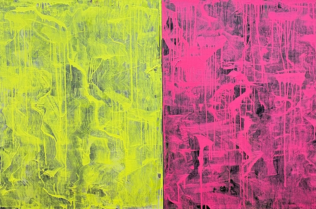 The running down of the color in some works is a metaphor of dissolution – of confusion. This seemingly destructive process is offset by the harmony and mood that the paintings nonetheless create.