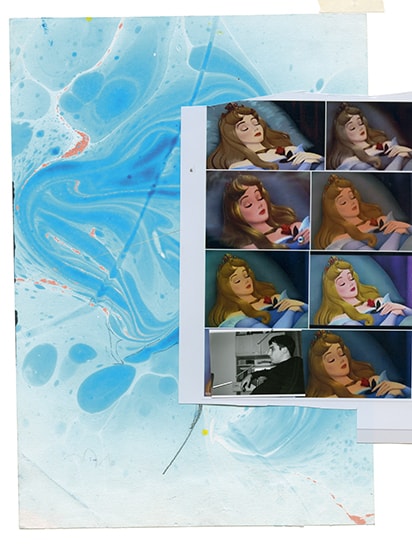 The sculpture is surrounded by a series of paintings. Wekua uses an architectural redefinition of the space to create his own viewing plane for the paintings while simultaneously reflecting the centrally-positioned sculpture as an object in space. Like the sculpture, the process of creating the exhibited paintings is based on strategies of assemblage and collage. Photographs were often a starting point for these works; Wekua treats these photos as archive material. First they appear in paper collages, then the collages are transferred to aluminum-composite plates using a complex, painterly silkscreen-printing process with different layers of pigment. The finished paintings emerge when Wekua edits and paints over these plates. Using a process of continuously applying oil paint and removing it, changing backgrounds, blurring or adding details, he constructs new contexts of meaning for his source material. The dominance of the respective color background and proportions of the original photos he incorporates often evoke the tradition of icon painting. The process of creating these paintings follows the same self-reflective, abstracting and sometimes effacing process that our memory does. Wekua succeeds in compressing several levels of time into one image while countering the past with a poetic reality of his own. These works are not to be understood as commentaries on the past and certainly not as its reconstruction. Rather, they are aimed at its complete, aesthetic transfiguration.