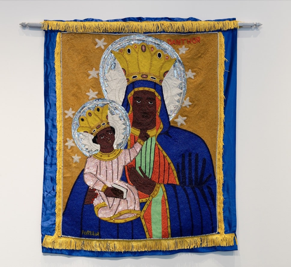 Image caption: Nadine Fortilus, Erzulie Danthor, 2006, glass beads on canvas and satin, 111 x 105 cm, © Private Collection, Berlin, photo by Alicja Kielan