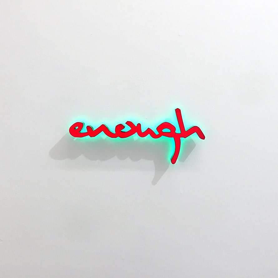 Image caption: Bodo Korsig, Enough, 2023, neon sign, 50 x 10 x 5 cm, courtesy AOA;87