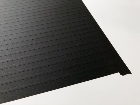 For his new series, shown for the first time at Loock, Callum Innes turned his tools into his material. The adhesive tape, usually an aid for delimiting planes in the painting, is no longer just used temporarily and then removed; rather, it constructs the surface. The strips of black adhesive tape are collaged closely next to each other, or individually, to build an opaque or transparent surface. The seemingly pragmatic decision to rip the tape into individual pieces rather than cutting it exactly remains visible and takes up the impression of the artists’s specific flow. They are slightly blurred or frazzled.
