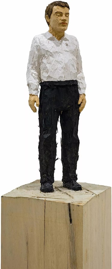 Stephan Balkenhol: “Mann mit geschlossenen Augen“, Wawa wood and colour, 2023, unique piece, 171 x 30 x 30 cm
