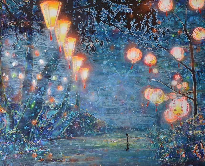 With the use of figurative elements, the painter transforms her compositions into narrative associative pictorial worlds that are characterised by atmosphere and emotional expression.