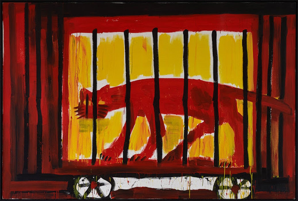 Image Caption: K.H. Hödicke, Der Tiger in seinem Käfig, 1989. Kunstharz auf Leinwand, 200 x 300 cm, Courtesy of Galerie Deschler, Berlin