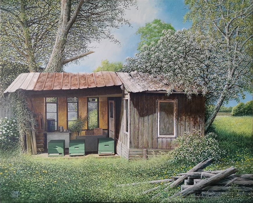 Elisabeth Störmer-Hemmelgarn, Bienenhaus, acrylic on canvas, 2022 © E.S.-H.