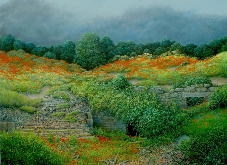 In her acrylic paintings and watercolors, Elisabeth Störmer-Hemmelgarn creates poetic landscapes and dilapidated buildings, embedded in the indestructible beauty of wild nature.