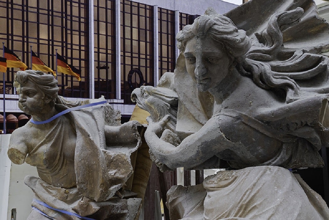In his exhibition Doppelgängers at EIGEN + ART Lab, Esper Postma addresses the ambiguity of historicity so often found in urban space through the active design of public space beginning in the 19th century with historical monuments. These were mostly dedicated to identity-political goals instead of a re-creation of the past. In his sculptures Postma takes up this conundrum, which leaves behind the idea of a linear temporality, by juxtaposing artifacts that come from completely different points in time. In this way, he not only poses the question of the actual origin of the monuments, but even more so, he asks about the historical drama itself, which takes place in public space, and thus unmistakably shapes the perception and thus the mode of being of everyone who spends time in it.
