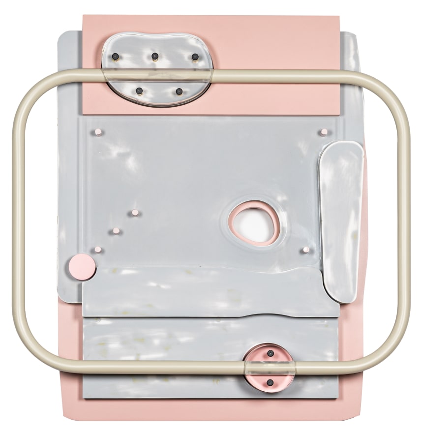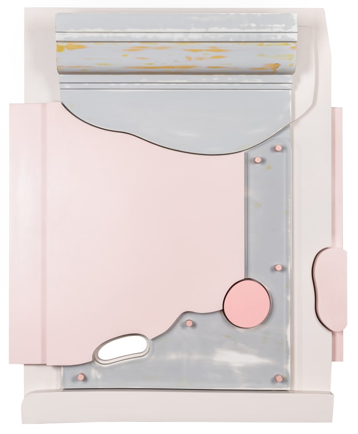 Again and again, particular details evoke memories of well-known cultural products and objects from our daily environment when we take a closer look: aren’t we facing handrails, handles, knobs, pipes, and conduits? We can almost sense a functionality, which, however, never becomes finally tangible. The most diverse materials nestle together poetically, seeming to interact with each other almost as if in a dance. Profile shapes familiar from stucco moldings or framing convey a dimension of space that seems folded up in these multilayered reliefs and yet infinitely continuable.
