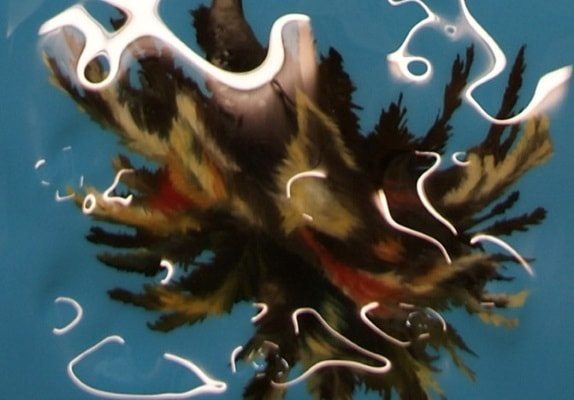 The palm tree is a dominant image in the artist’s work, featuring prominently in his latest series California Dream, 2016. These works, created in an extremely narrow portrait format, show upside-down palm trees against a monochrome blue background, supplemented and glossed by an equally monochrome red word in mirror writing, hovering in the lower third of the image above the pictorial representations. These reverse glass paintings use molten, deformed plexiglass instead of actual glass. Gildas Coudrais thereby creates an ironic commentary on issues of beauty and superficiality. The palm tree, symbolic for the city of Los Angeles and synonymous with the sun, the beach and a carefree life, is turned on its head, refuting and parodying those stereotypes. It seems as if the trees were reflected in the clear blue water of a swimming pool in a typical Los Angeles villa.
