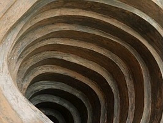 Shlomit Bauman’s ceramic works in “Run Out” spotlight a resource that has been exhausted: the artist casts her objects in the last available clay from a now depleted mine, highlighting the finite nature of our reserves and the irreversibility of consumption and waste. Sven Kalden likewise focuses on global resource extraction. His sculptures “Füllhorn I / II” (Cornucopia I / II) incorporate the concave forms of common mining structures and reduce them to progressively tapered, spiraling funnels. The cornucopia image references an old narrative of Western industrial growth ideology trumpeting a never-ending supply of electricity and raw materials.