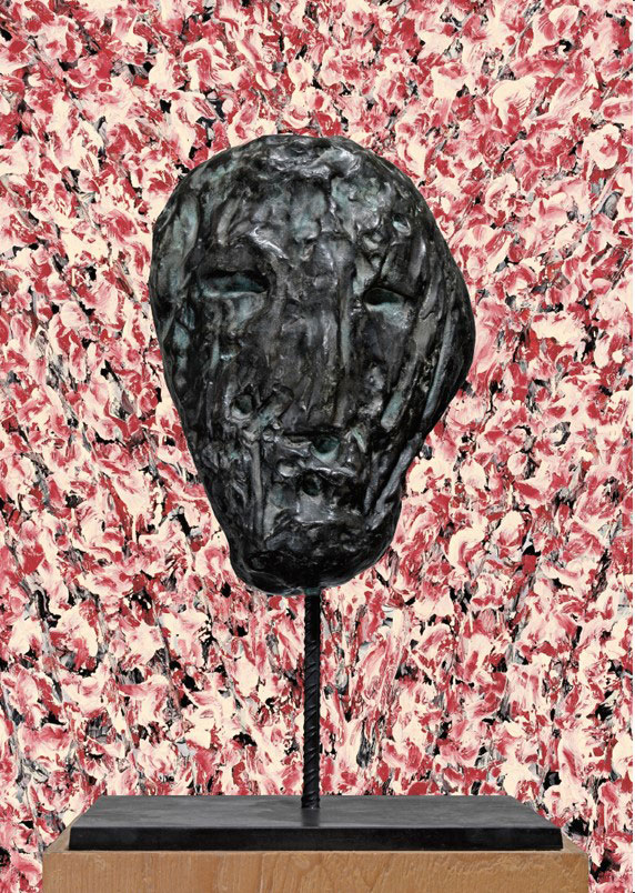 Image caption: GÜNTHER FÖRG “VIER BRONZEKÖPFE” (WVF.94.BR.0225), 1994, BRONZE, UNIQUE, CA. 60 X 40 X 40 CM || JULIAN LETHBRIDGE, “HERMES”, 2016 – 2018, OIL, PIGMENT STICK ON LINEN, 152,4 X 182,88 CM, RÜCKSEITE SIGNIERT UND DATIERT