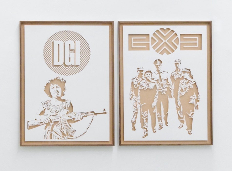 At the center of the exhibition is Lavastida’s manifesto Penitentiary Republic, around which he groups a cosmos of diverse works in a wide range of techniques and genres. Alongside his signature cut outs are video works, canvas paintings, stamp drawings, and photo wallpapers. They all come together to form a room-filling installation in which art and agitation merge, in which aesthetic and political aspirations enter into a symbiosis, and in which the will to design is grasped in terms of both form and content—following the artist’s conviction that, on the evidence of worldwide upheavals, wars, threats, and historical falsification, one cannot be separated from the other.