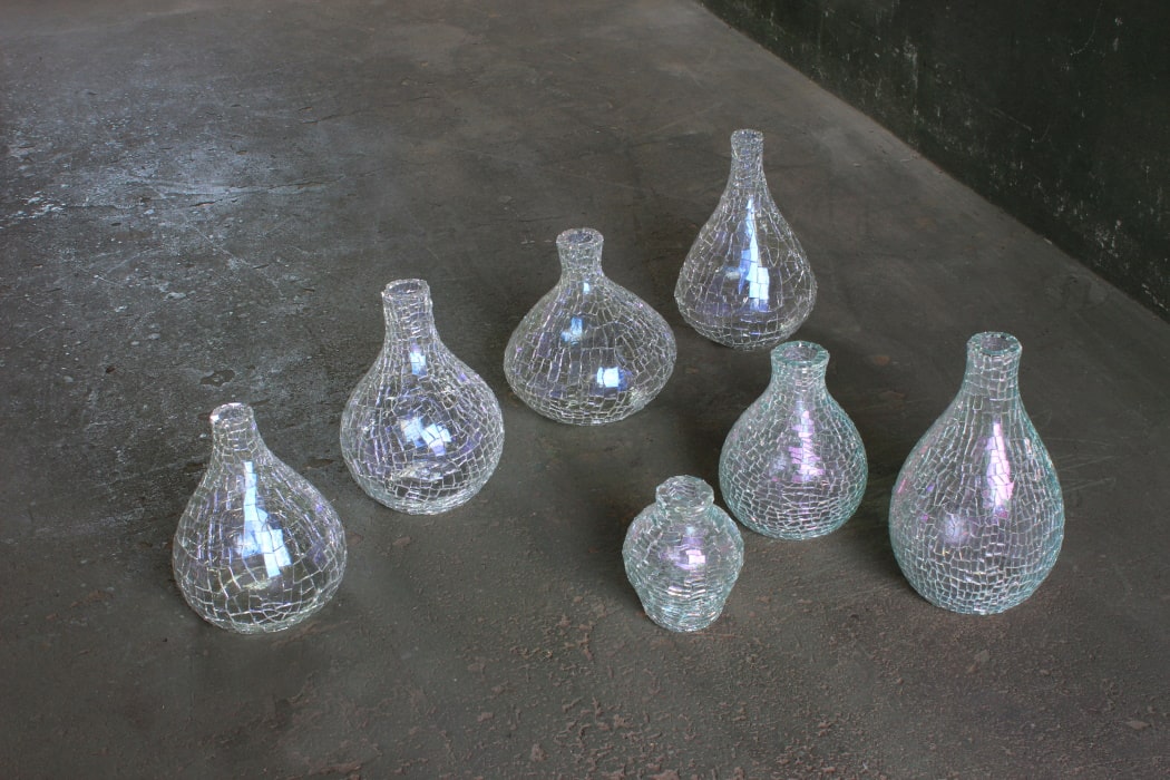 Masami Hirohata, Löte die Lose, Assemblage, blown glass vases, covered with shards from dichroic glass,