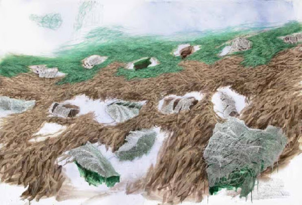 The often colorful plasticity of Harald Gnade ‘s three-dimensional paintings can be understood as abstraction, but they evoke strong associations of natural landscapes that seem to float on the canvas like plots in the airy, watery or monochrome surrounding space. The artist attempts to narrate our contemporary understanding of nature as a mix of the artifactual and the natural world.