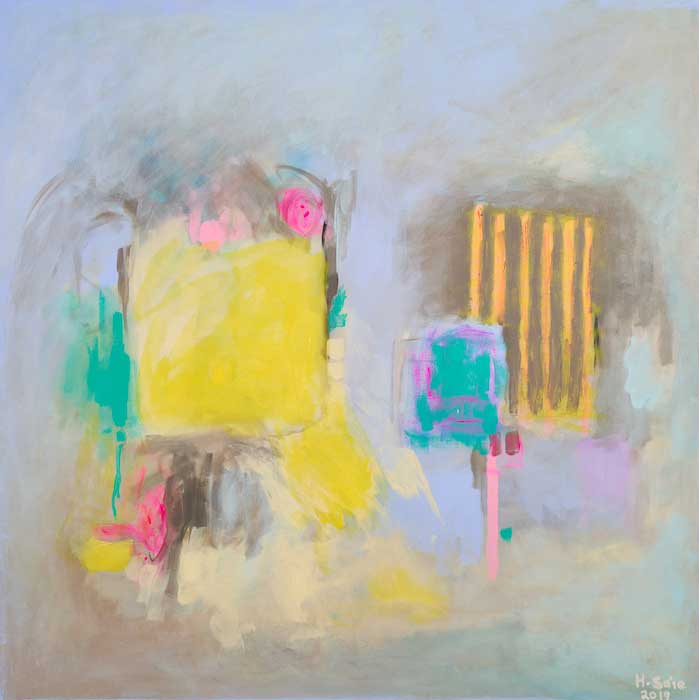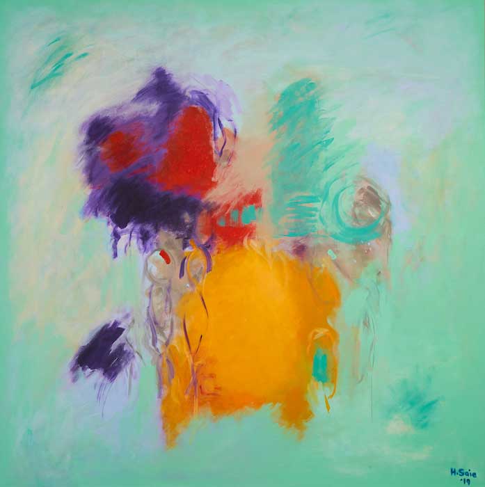 Huda Al Saie is a Bahraini artist, most known as the leading pioneer of porcelain art in Bahrain. Exploring new forms of expression, she started creating multiple series of larger acrylic paintings on canvas in 2018 that, due to the scale and medium, allowed Al Saie more freedom in her process. Thanks to the immediacy of the paint, she was now able to enact larger gestural strokes and work with abstraction in general compared to the extremely detailed and precise work that usually lends itself to traditional porcelain painting. Al Saie is inspired by the unique and ancient architecture of Bahrain and the Kingdom’s flora and fauna.