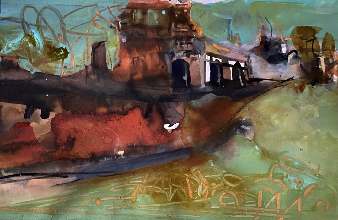 Image above: Schiffswrack auf dem Trockenen des Aralsees II, 2024, Mischtechnik auf Papier, 30 x 49 cm