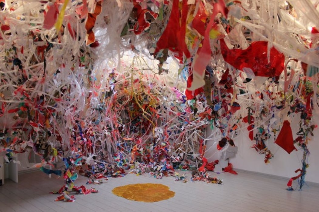 “My installations are an invitation to the visitor to immerse himself in a three-dimensional painting, to sink into it, to forget the outside world for a moment and to lose himself in an in-between world of colour sounds, organic forms and structures.”
