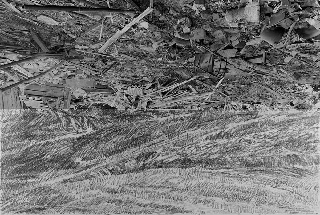 Image caption: Lada Nakonechna, Below Ground Level 1.1, 2024, Inkjet print on photo paper, cut out, graphite, 40 x 60 cm