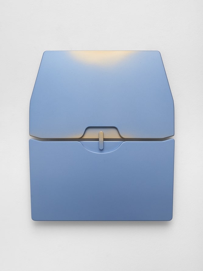 Image caption: Lena Marie Emrich, 07:09, 2024, Back Seat Series, Recycled Hard Platic, Car paint, Magnet, 43,5 x 37 x 3 cm, Unique, Courtesy the artist and OFFICE IMPART, Photo: Marjorie Brunet Plaza