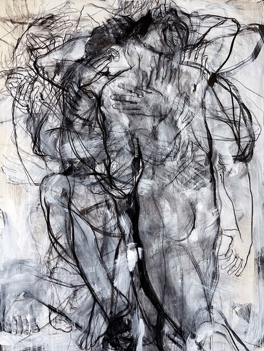 Maria Naidyonova, Lovers, 2024, mixed media on canvas, 200 x 150 cm, ©M. Naidyonova