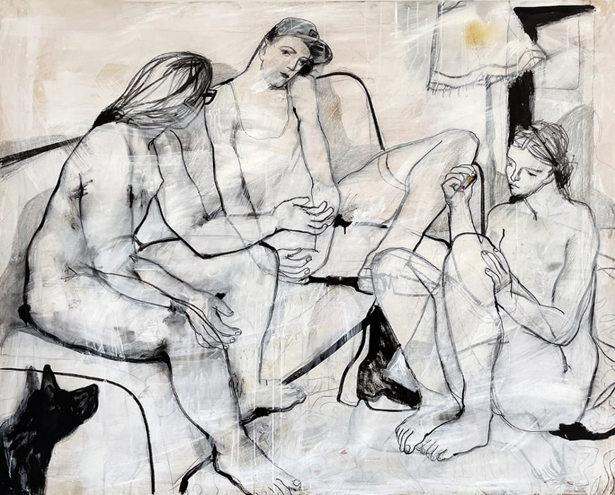 Maria Naidyonova is a master of the large format with a sensitivity for the line and its inherent emotional power. Her works on canvas are more drawing than painting: sometimes tactile and exploratory, sometimes powerful and expansive, she uses charcoal, pencil and glazed brushstrokes to read the emotional space of the figures depicted. After two years of concentrated work in the studio, the artist is presenting her new works to the public for the first time.