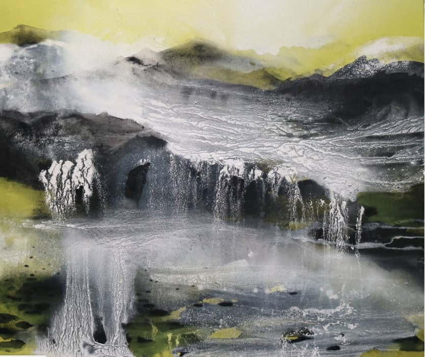 The focus is on the landscape of Iceland, which Hopf discovered in 2017. This was followed by several years of artistic reorientation in Iceland. Marianne Hopf’s works reflect the experience and perception of a very special nature: moments of contradiction in which she explores boundaries and transitions of different states, special states of irritation that build up from the sensations between stability and instability.