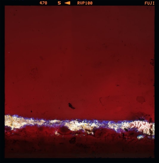 Image caption: Todd Johnson | ‘Film transparency buried for 6 months, 3 weeks, 2 days’, 2017. Contact print on dibond, 80 x 80cm
