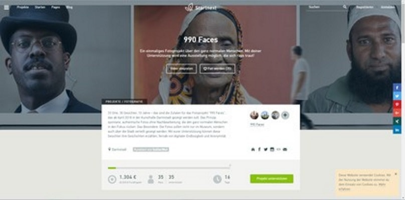 In April 2018, a 3-month photo exhibition is to be realized at the Kunsthalle Darmstadt and a selection of the 540 photos of the “990 faces” will be shown. The money will be used to cover the production costs of the photographic exhibits.