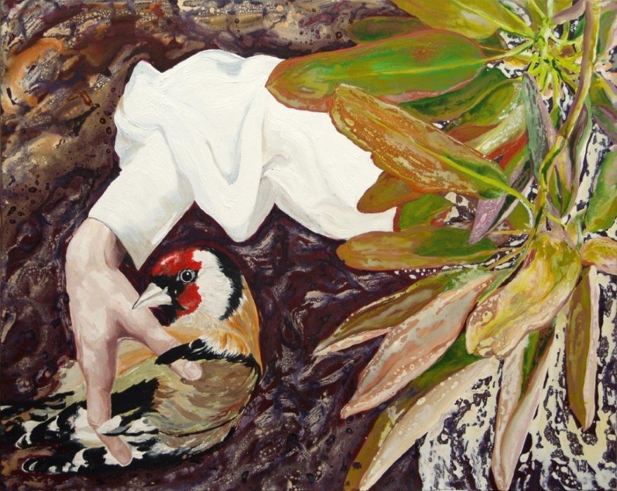 Kerstin Serz, Akalanthis, 2020, Öl, Acryl und Blattgold 18 Karat auf Nessel, 80cm x 100 cm
