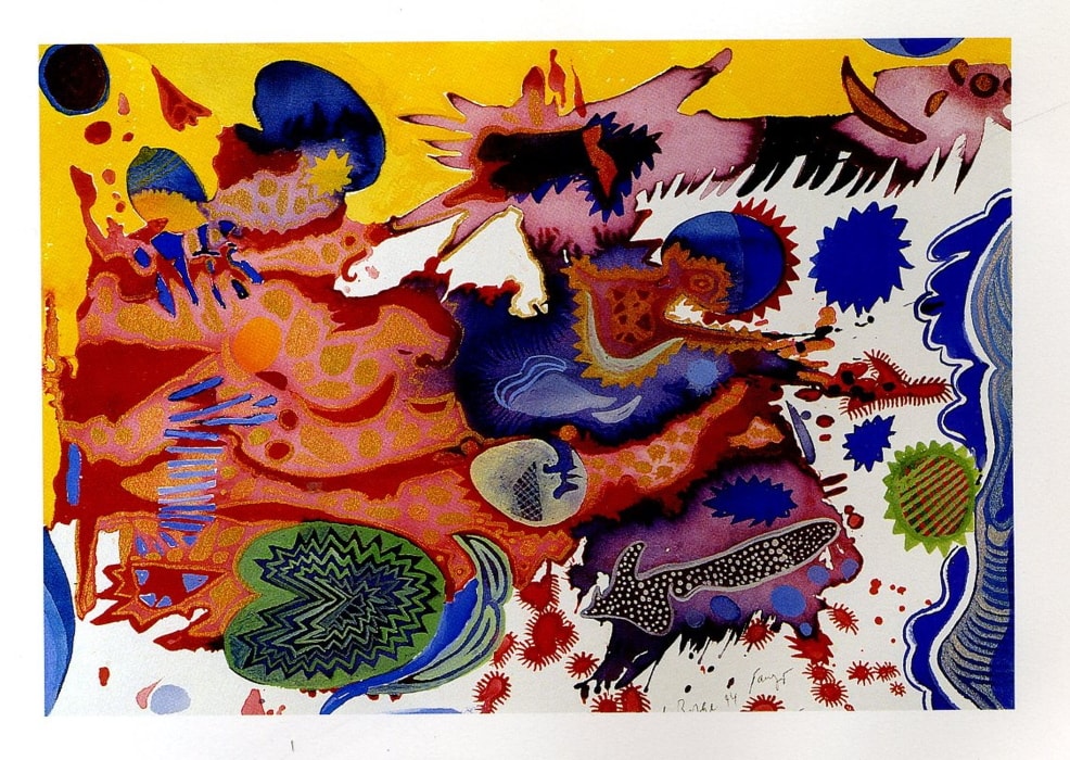 Buthes letzte Werke aus Tanger von 1994, eines ist das zentrale Motiv der aktuellen Ausstellung (siehe oben), sind unter anderem ein ins Malerische umgesetzter „Orakelkorb“, wie ihn der Künstler einst in Benin kennengelernt hatte. Der Orakelkorb dieser afrikanischen Stammeskultur enthält viele kleine Objekte wie Muscheln, Knochen, Figuren, Artefakte aller Art, die vom Medizinmann immer wieder neu geschüttelt und in jeweils neuer Kombinatorik inhaltlich gedeutet werden.