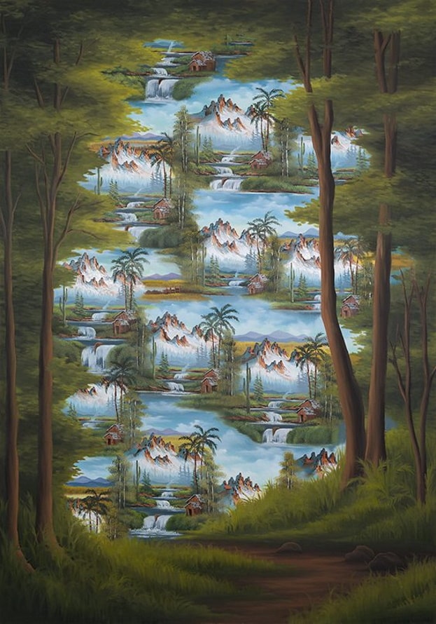 Image caption: Neil Raitt, Rocky Glacier (View Through the Trees), 2022, Oil on canvas, 200 × 140 cm