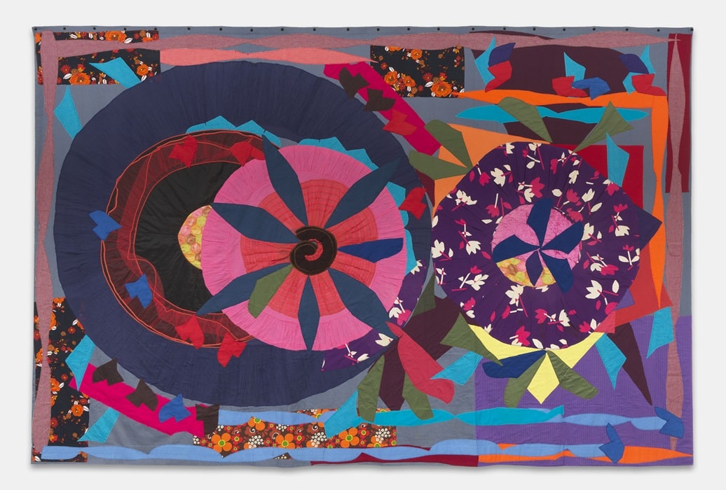 Image caption: Noa Eshkol, The Locomotive, 1990s, © Noa Eshkol. Courtesy the artist and neugerriemschneider, Berlin. Photo: Jens Ziehe, Berlin, cotton, linen, wool, silk, tulle, 272 x 411 cm