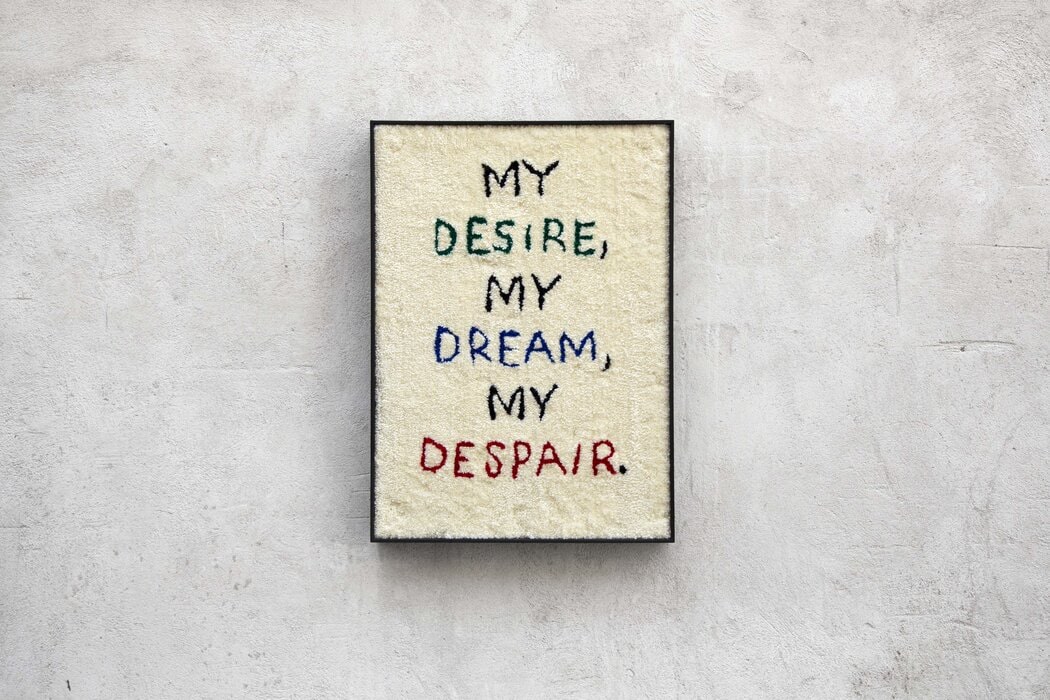Bildunterschrift Titel: Numero Cromatico, My desire my dream my despair, 2022, Arazzi, handgefertigter Wandteppich aus Wolle auf Holzplatte, 70 x 50 cm, gerahmt, Photo: Numero Cromatico