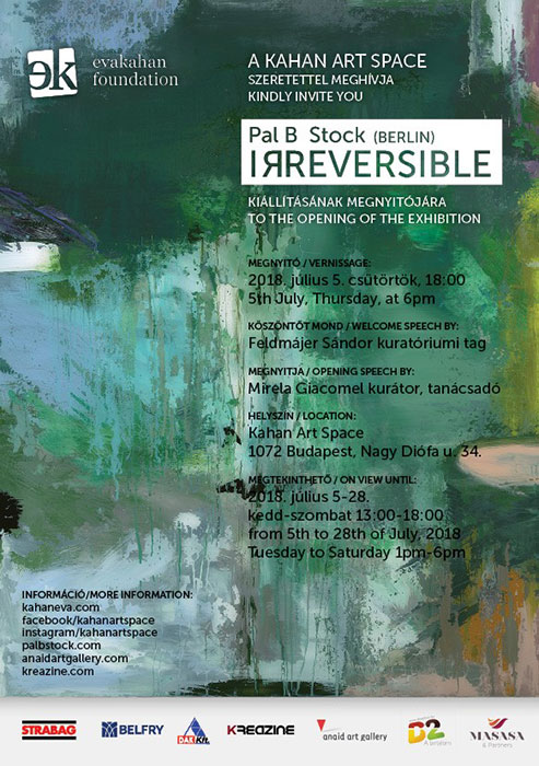In Budapest you can currently enjoy art from Berlin: The Berlin Anaid Art Gallery is pleased to announce the opening of the solo exhibition ”Irreversible” by Pal B. Stock on July 5, 2018 at the Kahan Art Space, Budapest (Eva Kahan Foundation). The exhibition was created in collaboration with the Anaid Art Gallery (www.anaidartgallery.com) and Kreazine (www.kreazine.com).
