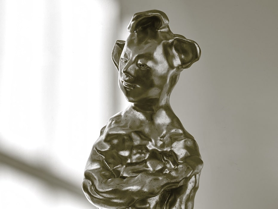 The exhibition presents brand new sculptural works in bronze and wood, as well as a selection of watercolor drawings on paper.
