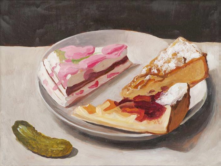 Three Pieces of Cake | mischtechnik/fibreboard | 11.8 x 15.7 inches | 2017