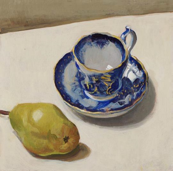 Demitasse and Pear | mischtechnik/fibreboard | 11.8 x 11.8 inches | 2018