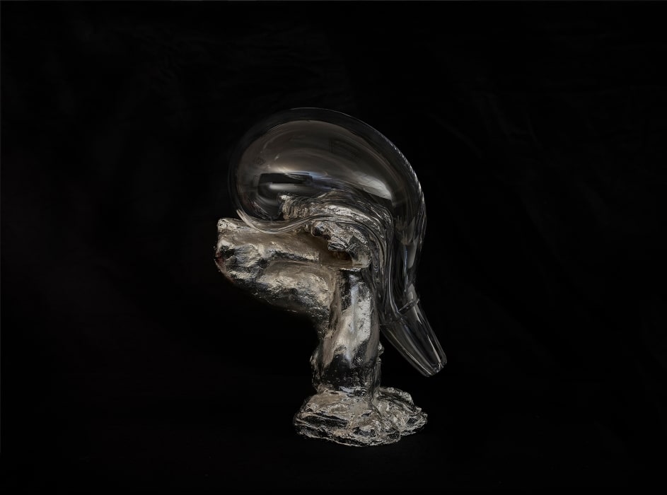 Susanne Roewer: Twilight, 2020, Bronze versilbert, Glas, 36 x 26 x 26 cm, Unikat