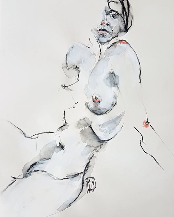 In dialogue with the model. Drawings and hybrid forms of drawing and painting emerge in short, time-limited sequences, preserving the fleeting nature of the pose. The intuitive capturing of the moment forms the central concept in Susanne Winkler’s artistic work and is particularly evident in her nude drawings.
