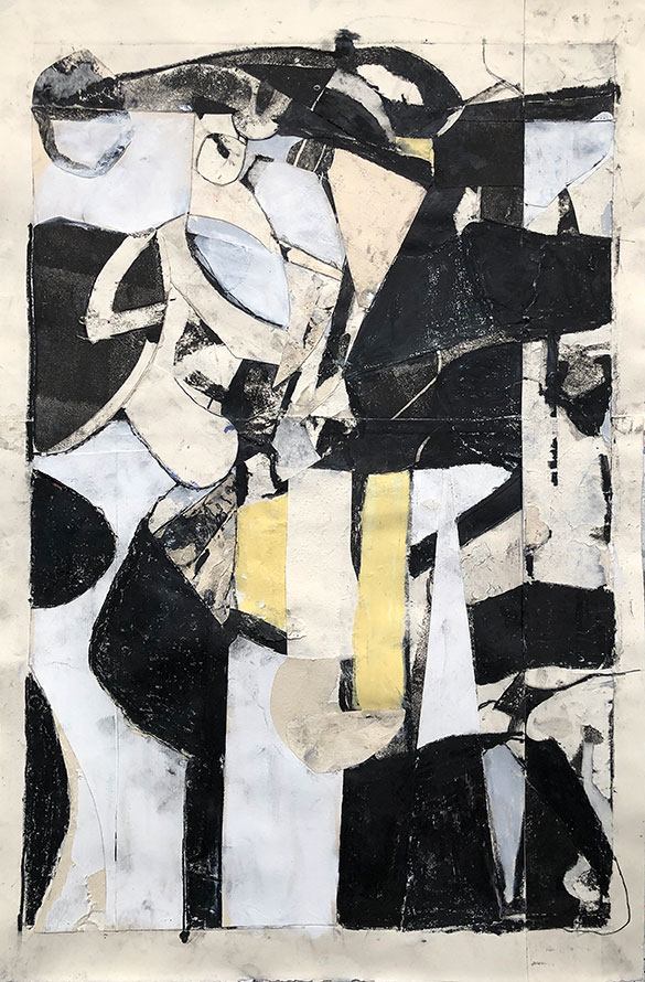oil acrylic and charcoal on canvas sewn to fabric, 127 x 107 cm