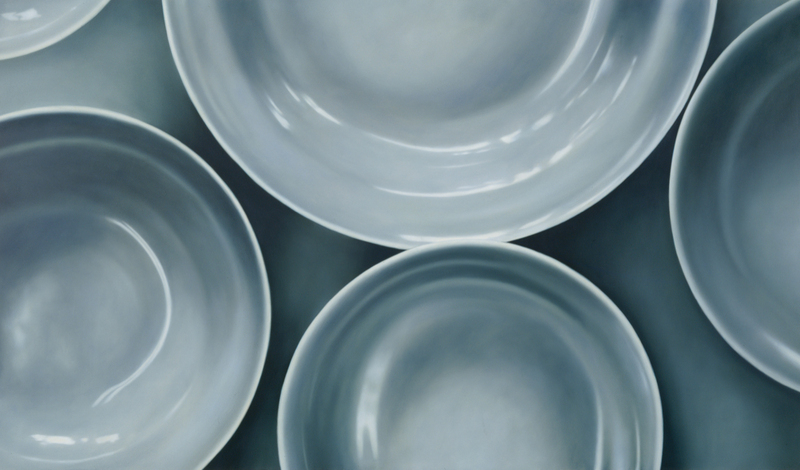 Caption image title: Thomas Kitzinger, Teller, 1998, Öl auf Aluminium, 70 × 120 cm.