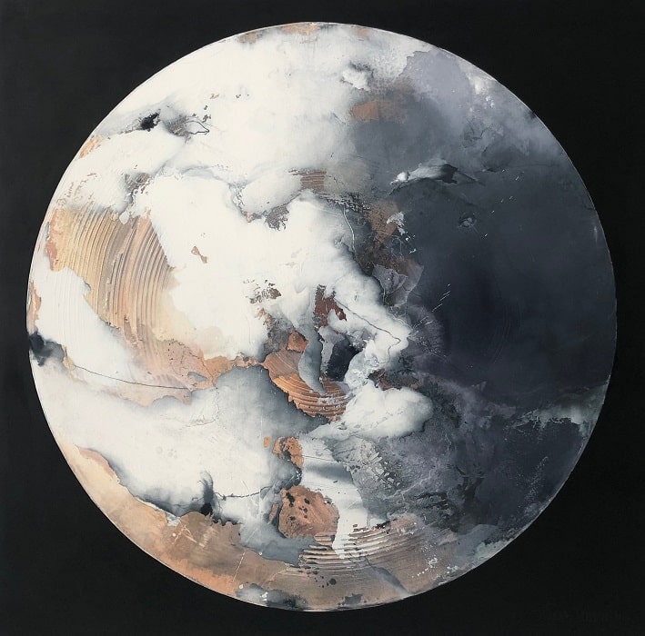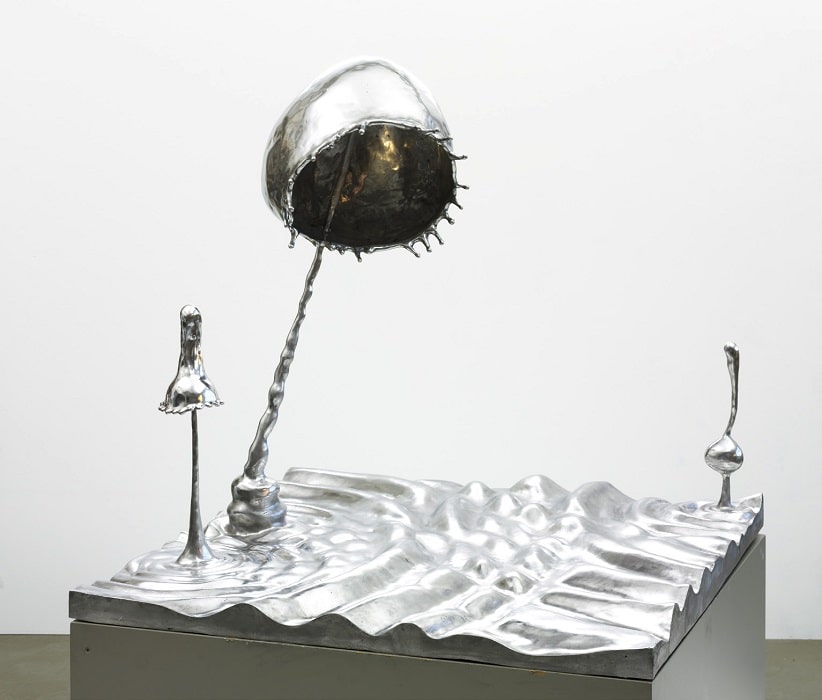 The images of the French documentary film “Microcosmos – Le peuple de l`herbe” from 1996 – which took ten years to produce and required a special camera programmed for the tiniest movements – provided Anna Bogouchevskaia with the first impetus to deal with the microcosm of “drops”. She wanted to give form to what “only exists for a second, a third of a second”. “In their abstraction, they open up a wide associative space, make us think of the blossoming and fading of flowers or of game pieces in a board game. At the same time, however, they also make the element of water immediately tangible as a living one, not least through the silvery, metallic sheen,