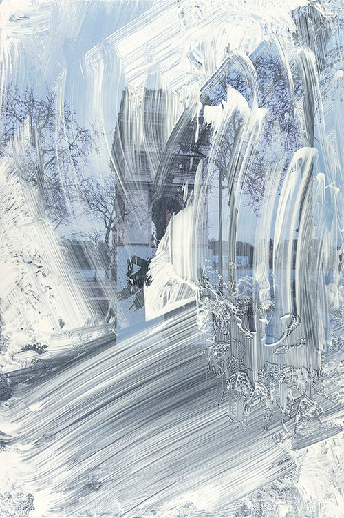 Galerie Springer Berlin is presenting two series in the current exhibition. The first, Genius Loci, which gives the exhibition its name, emerged in Berlin at ‘non-places’, such as former industrial sites on the edge of the Moabit district and around Zoo Station. In complete contrast is the Triomphe series, which originated in Paris at monumental and central locations such as the Arc de Triomphe, the Eiffel Tower and the Seine, close to the Place Concorde. In both series’ works, the clichés that we associate with these locations interestingly disappear. The glamour of Paris and the dirt, stench and inhospitality of the ‘Berlin non-places’ merge, creating space for a new quality that can be poetic, violent, destructive and fascinating, and which sometimes comes very close to abstraction.
